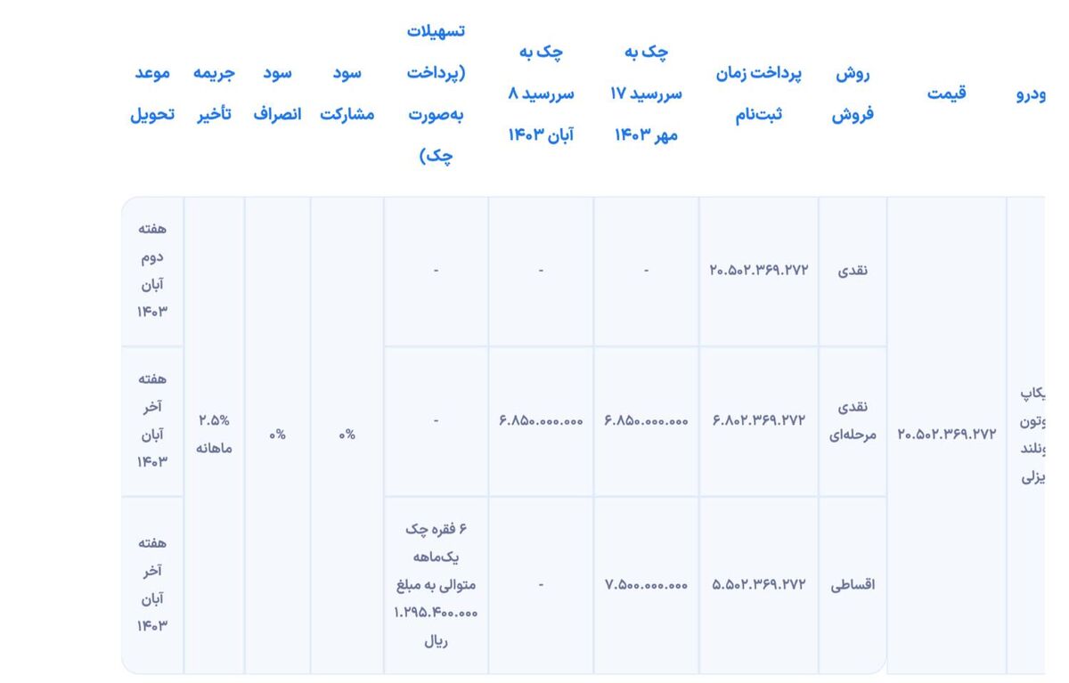 شرایط فروش پیکاپ فوتون دیزلی به روش نقد و اقساط، شهریور 1403: (قیمتها به ریال هستند)